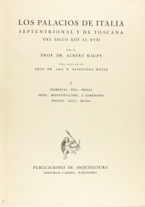 1930 ca. LIBRO : (ARQUITECTURA). HAUPT, ALBERT : LOS PALACIOS DE ITALIA SEPTENTRIONAL Y DE TOSCANA DEL S. XIII AL XVII. Barcelona : Ed. Canosa, s.a. 3 vol. en gran folio.