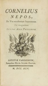 1745. LIBRO : (BIOGRAFÍA-HISTORIA). CORNELIUS NEPOS : DE VITA EXCELLENTIUM IMPERATORUM. Lutetiae Parisiorum [París] : Sumptibus Mich. Steph. David, 1745. 8º menor.