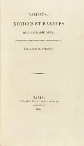 1822. LIBRO : (BIBLIOFILIA). PEIGNOT, GABRIEL : VARIÉTÉS, NOTICES ET RARETÉS BIBLIOGRAPHIQUES. Paris : Ant. Aug. Renouard, 1822. 8º mayor.