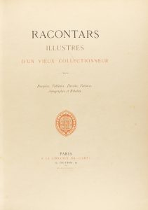 1887. LIBRO : (BIBLIOGRAFÍA). COUSIN, CHARLES : RACONTARS ILLUSTRÉS D´UN VIEUX COLLECTIONNEUR. París : Lib. ´Art´, 1887. Folio menor.