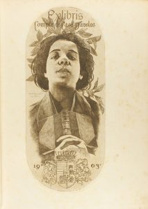 1903. LIBRO : (EX-LIBRIS-RIQUER). RIQUER, A. : EX-LIBRIS. 1903. Prólogo de M. Utrillo. Barcelone : Imp. J. Thomas, 1903. Folio menor.