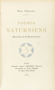1914. LIBRO : (BIBLIOFILIA). VERLAINE, PAUL : POÈMES SATURNIENS. Paris : Ed. Albert Messein, 1914. 4º.