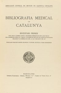 1918. LIBRO : [BIBLIOFILIA]. BIBLIOGRAFIA MEDICAL DE CATALUNYA. INVENTARI PRIMER. PRÉS DELS LLIBRES ANTICS I MODERNS PRESENTATS EN L´EXPOSICIÓ BIBLIOGRÁFICA ANEXA AL SEGON CONGRÉS DE METGES DE LLENGUA CATALANA CELEBRAT A BARCELONA DEL 24 AL 28...