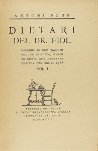 1933-35. LIBRO : [BIOGRAFÍA-DERECHO]. PONS, ANTONI : DIETARI DEL DR. FIOL. MEMORIES DE DON JOAQUIM FIOL, DE MALLORCA, DOCTOR EN DRETS, QUE COMPRENEN DE L´ANY 1782 FINS EN 1788. VOL. I [I II]. Palma de Mallorca : Publicacions de la Societat...
