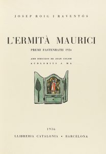 1936. LIBRO : (BIBLIOFILIA-BRUGALLA). ROIG RAVENTÓS, JOSEP : L´ERMITÀ MAURICI. Barcelona : Libr. Catalonia, 1936. 4º.