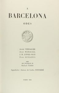 1944. LIBRO : (BIBLIOFILIA). VERDAGUER, MARAGALL, LÓPEZ-PICÓ y GUILANYÀ : A BARCELONA : ODES. Introducción de Rafael Tasis. Paris : Ed. Firmin Didot, 1944. 4º.