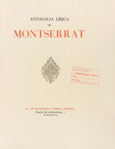1947. LIBRO : (BIBLIOFILIA-MONTSERRAT). ANTOLOGÍA LÍRICA DE MONTSERRAT. Barcelona : Ed. Mª de Montserrat Borrat, 1947. 4º menor.