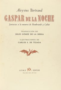 1951. LIBRO : (LITERATURA-BRUGALLA). BERTRAND, ALOYSIUS : GASPAR DE LA NOCHE. Traducción de Julio Gómez de la Serna. Ilustraciones de Carlos S. de Tejada. Barcelona : Aymà Editor, 1951. 4º.