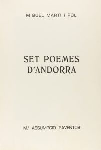1988. LIBRO : (BIBLIOFILIA). MARTI I POL, MIQUEL ; RAVENTOS, MARIA ASSUMPCIO [ilustradora] : SET POEMES D´ANDORRA. Barcelona : Ed. Galeria ; Joan de Serrallonga, 1988. Folio.
