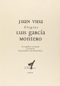 1999. LIBRO : (BIBLIOFILIA). VIDA, JUAN y GARCÍA MONTERO, LUIS : ELEGÍAS. Granada : Galería Almirante, 1999. Folio.