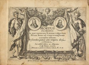 ─ ALTERA PARS HORTI FLORIDI IN QUA PRAETER FLORES VARIA ETIAM REPERIUNTUR ARBORUM FRUCTIFERARUM... : frontis grabado + portada+ grabado con inscripción latina + 120 grabados numerados en lámina, dos grabados en cada lámina excepto para el 53 y el 120 que van en una lámina completa.