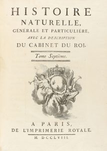 1750-1758. LIBRO : [CIENCIAS]. BUFFON, COMTE DE : HISTOIRE NATURELLE, GÉNERALE ET PARTICULIÈRE, AVEC LA DESCRIPTION DU ROI. TOME PREMIER [A] TOME SEPTIÈME. Paris : de l´Imp. Royale, 1750- 1758. 4º mayor.