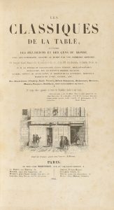 1844. LIBRO : (GASTRONOMÍA). JANIN, JULES, et alia : LES CLASSIQUES DE LA TABLE, A L´USAGE DES PRATICIENS ET DES GENS DU MONDE. Paris : Paris : imprimé par Bethune et Plon : Dentu / Trese / J. Renouard/ etc. , 1844. 4º menor.