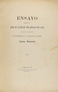 1891. LIBRO : (CIENCIA-NAVEGACIÓN). MONTURIOL, NARCISO : ENSAYO SOBRE EL ARTE DE NAVEGAR POR DEBAJO DEL AGUA. Barcelona : Imp. Henrich y Cª, 1891. Folio.