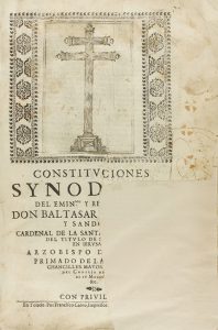 [1660]. LIBRO : (DERECHO ECLESIÁTICO). [MOSCOSO] Y SAND[OVAL], BALTASAR : CONSTITUCIONES SYNOD[ALES] DEL EMINmo.... Toledo : Imp. Francisco Calvo, [1660]. 4º mayor.