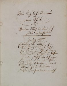 Hegelsseitten (der) von der Ellipse für sich selbst Entraehtet [2 ter Theil]. Non datato ma XVIII secolo.