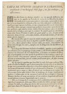 1707 ca. FOLLETO : [ANÓNIMO AUSTRACISTA]. CARTA DE NUESTRO SERÁFICO P. S. FRANCISCO CONSOLANDO A UN RELIGIOSO HIJO SUYO, EN SUS TRABAJOS, Y AFLICIONES. [TERMINA:] HIJO CONCLUYO ESTA CARTA ALABANDO EN TI LA CONFORMIDAD CONQUE PADECES TANTOS...