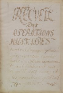Recuil / des / operations / militaires / tant en Campagne / qu'en Garnison, dans les / quels un Officier experimen- / té peut facilment voir / se, qu'il doit faire, et / les precautions, qu'il doit / prendre. Non datato ma seconda metà del XVIII...