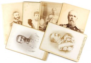 A. Ken, Reutlinger, Bulla Freres, J. David, Disderi, Eyre y Vazquez, Sancho (Valladolida), Fernando Debas, Esplugas, etc. Muchos de los retratados son personajes históricos destacados, como Alfonso XIII de niño, el rey Milano de Serbia, el archiduque de Austria, Humberto I rey de Italia, el príncipe Jorge de Grecia, Bismark, el rey de Siam, Alfonso XII, Maria Cristina...