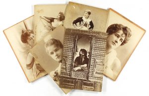 Retratos fotográficos montados en cartoné con los datos de los estudios fotográficos.