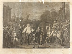 [4] Le dernier moment de la vie du roy Louis XVI. Encouragé per son Confesseur Edworth a la vue du son Supplice tandis que le Général Santerre en presse l´execution le 21 Janvier 1793. Dibujado por Benazech ; grabado por Silanio. 35x46 cm.