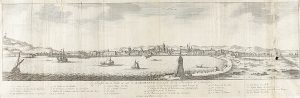 1741. GRABADO : (BARCELONA). VAN DER AA. E L´HONORÉ & FILS, P. : LE PROFIL DE LA VILLE DET CITÉ DE BARCELONNE. CAPITALE DE LA PROVINCE DE CATALOGNE. Amsterdam : 1741. 14 X 44,5 cm.