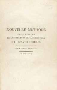 1768. GRABADO : (ASTRONOMIA). CHAULNES, M. LE DUC DE : NOUVELLE METHODE POUR DIVISER LES INSTRUMENTS DE MATHÉMATIQUE ET D´ASTRONOMIE. Pliego sin enc. procedente de la primera edición de l´ENCYCLOPEDIE. Imp. L. F. Delatour, 1768. Folio mayor.