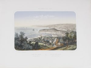 1860 ca. GRABADO : [NIZA). DEROY. (DIBUJÓ Y LITOGRAFRIÓ) : PORTS DE MER D´EUROPE / VUE DE NICE, PRISE DU CHEMIN DE MONT-ALBAN / VISTA DE NIZA, TOMADA DEL CAMINO DE MONTE-ALBANO. Paris : L. Turgis, [c.1860]. 33,5x50 cm (litografía), 55x71,5 cm...