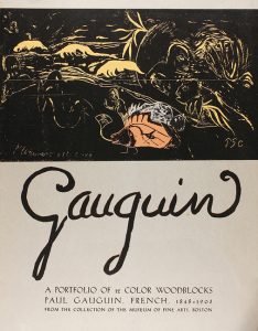 Portfolio de 1 h y 12 láminas con las reproducciones xilográficas de Gauguin.