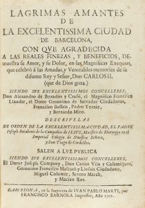 1701. LIBRO : (BARCELONA-REALEZA). ROCABERTI, IOSEPH : LAGRIMAS AMANTES DE LA EXCELENTISSIMA CIUDAD DE BARCELONA, CON QUE AGRADECIDA A LAS REALES FINEAS, Y BENEFICIOS, DEMUESTRA SU AMOR, y su dolor en las magnificas exequias, que celebró a las...