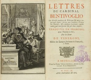 1709. LIBRO : (HISTORIA). LES LETTRES DU CARDINAL BENTIVOGLIO. Traduites en François avec l´Italien par le sieur de Veneroni. Bruxelles : Fereres´t Serstevens, 1709.