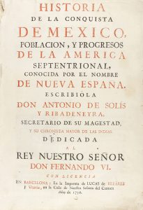 1756. LIBRO : (HISTORIA). SOLIS DE RIBADENEYRA, ANTONIO DE : HISTORIA DE LA CONQUISTA DE MEXICO, POBLACION, Y PROGRESOS DE LA AMERICA SEPTENTRIONAL... Barcelona : Imp. Lucas de Bezares y Urria, 1756. Folio menor.