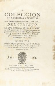 1764. LIBRO : [ENCUADERNACIÓN REAL-CARLOS III]. MARTÍNEZ DE SALAZAR, ANTONIO : COLECCIÓN DE MEMORIAS, Y NOTICIAS DEL GOBIERNO GENERAL Y POLÍTICO DEL CONSEJO. LO QUE SE OBSERVA EN EL DESPACHO DE LOS NEGOCIOS, QUE LE COMPETEN, LOS QUE...