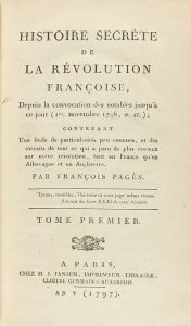 1797. LIBRO : (REVOLUCION FRANCESA). PAGÈS, FRANÇOIS : HISTOIRE SECRÈTE DE LA RÉVOLUTION FRANÇOISE. Paris : Imp. H. J. Jansen, 1797. 3 vol. en 8º mayor.