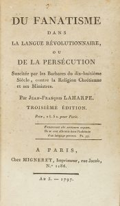 1797. LIBRO : (REVOLUCIÓN FRANCESA). LAHARPE, JEAN-FRANÇOIS : DU FANATISME DANS LA LANGUE RÉVOLUTIONNAIRE, OU DE LA PERSÉCUTION. Paris : Imp. Migneret, 1797. 8º mayor.