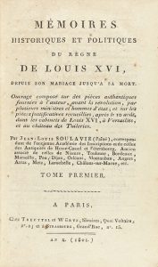1801. LIBRO : (HISTORIA FRANCIA). SOULAVIE, JEAN-LOUIS : MÉMOIRES HISTORIQUES ET POLITIQUES DU RÈGNE DE LOUIS XVI, DEPUIS SON MARIAGE JUSQU´A SA MORT. Paris : Chez Treuttel et Würtz, 1801. 6 vol. 8º mayor.