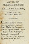 sin portada, 8 h. + CXCV p. Incluye : CATALUÑA TRIUNFANTE, SUS LUCHAS Y TRIUNFOS, EN LA GUERRA CONTRA EL TIRANO DE EUROPA NAPOLEON. : Puntos de óxido. Enc. en pergamino de época. Palau 100131.