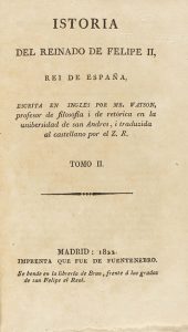 1822. LIBRO : (HISTORIA ESPAÑA). WATSON : ISTORIA DEL REINADO DE FELIPE II., REI DE ESPAÑA. Madrid : Imp. Fuentenebro, 1822. 2 vol. 8º.