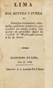 1829. LIBRO : (HISTORIA). [TERRALLA Y LANDA, ESTEBAN:]. LIMA POR DENTRO Y POR FUERA. En consejos economicos, saludables, politicos y morales, que confiere un amigo á otro, con motivo de pretender dejar la Ciudad de Mejico, por pasar á la de...