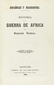 1859. LIBRO : (HISTORIA ESPAÑA). VENTOSA, EVARISTO : ESPAÑOLES Y MARROQUIES. HISTORIA DE LA GUERRA DE AFRICA. Barcelona : Libr. de Salvador Manero, 1859. 2 vol. en 4º menor.
