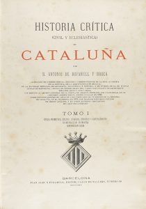 1876-1878. LIBRO : (HISTORIA-CATALUNYA). BOFARULL Y BROCÁ, ANTONIO : HISTORIA CRÍTICA DE CATALUNYA. Barcelona : Ed. Juan Aleu y Fogarull, 1876-1878. 9 tomos en 8 vol. en folio menor.