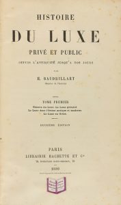 1880. LIBRO : (HISTORIA). BAUDRILLART, H. : HISTOIRE DU LUXE PRIVÉ ET PUBLIC DEPUIS L´ANTIQUITÉ JUSQU´A NOS JOURS. Paris : Libr. Hachette, 1880. 4 vol. 4º menor.