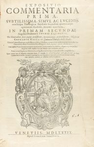 1589. LIBRO : [Filosofia]. KOELLIN, CONRADUM : EXPOSITIO COMMENTARIA PRIMA, SUBTILISSIMA, SIMUL AC LUCIDES [...] IN PRIMAM SECUNDAE ANGELICI DOCTORIS S. THOMAE AQUINATIS. Venetiis : Apud Franciscum Franciscium [Dominicum Niolinum], 1589. Folio.