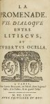 • ID. LA PROMENADE VII DIALOGUE ENTRE LITISCUS ET TUBERTUS OCELLA. : Id. : 1664. 164 p. + 2 h.