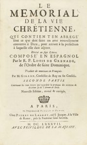1687. LIBRO : (RELIGIÓN). GRENADE, LOUIS DE : LE MEMORIAL DE LA VIE CHRÊTIENNE, QUI CONTIEN TEN ABREGE...SECONDE PARTIE. Paris : Imp. Pierre de Launay, 1687. 8º mayor.
