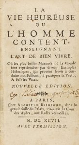 1697. LIBRO : (HUMANIDADES). LA VIE HEUREUSE OU L´HOMME CONTENT ENSEIGNANT. L´ART DE BIEN VIVRE. París : Imp. Augustin Besoigne, 1697. 8º menor.