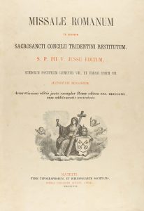 1877-1880. LIBRO : [Misal Romano]. MISSALE ROMANUM EX DECRETO SACROSANCTI CONCILII TRIDENTINI RESTITUTUM, S.P. PII V. JUSSU EDITUM, SUMMORUM PONTIFICUM CLEMENTIS VIII. ET URBANI ITIDEM VIII. ACURATISSIMA EDITIO JUXTA EXEMPLAR ROMAE EDITUM ANN....