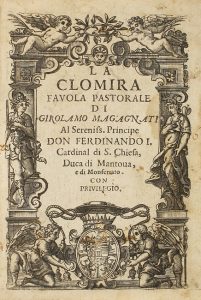 1613. LIBRO : (LITERATURA). MAGAGNATI, GIROLAMO : LA CLOMIRA. Favola Pastorale. Venetia : Imp. Antonio Pinelli, 1613 [en colofón]. 12º.