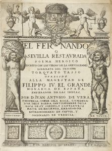 1632. LIBRO : (LITERATURA HEROICA). VERA Y FIGUEROA, IVAN ANTONIO (CONDE DE LA ROCA) : EL FERNANDO O SEVILLA RESTAURADA POEMA HEROICO ESCRITO CON LOS VERSOS DE LA GERUSALEMME liberata del insigne Torquato Tasso, ofrecido alla magestad de Filippo IV...