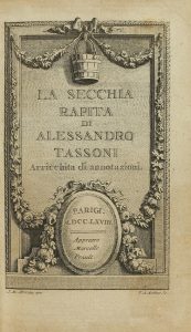 1766. LIBRO : (LITERATURA). LA SECCHIA RAPITA DI ALESSANDRO TASSONI. Parigi : Appresso Marcelo Prault, 1766. 8º menor.